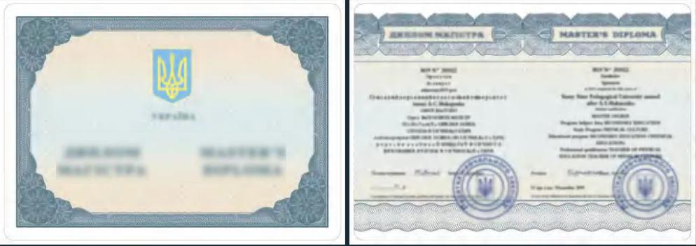 乌克兰沃伦国立大学毕业学位证书样本