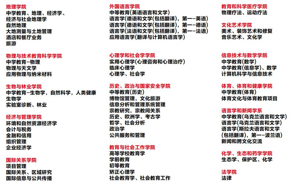 02乌克兰沃伦国立大学在职研究生项目管理招生简章—招生专业