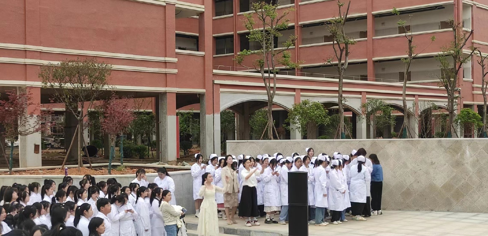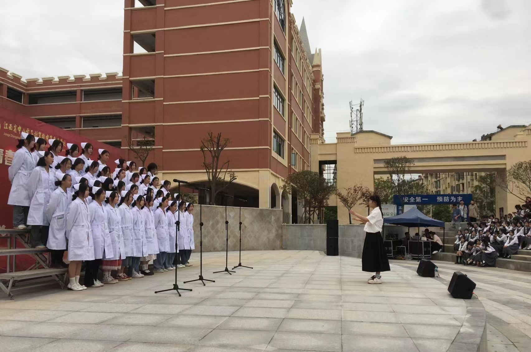 为深入学习贯彻党的二十大精神,热情讴歌党的光辉事业,充分展现新时代青年爱党爱国的青春风貌,4月10日下午我校在新校区的沉降广场举办了主题为"青春献礼二十大 ,红歌唱响新校园"班级合唱比赛活动。本次比赛由学工处和团委共同承办。