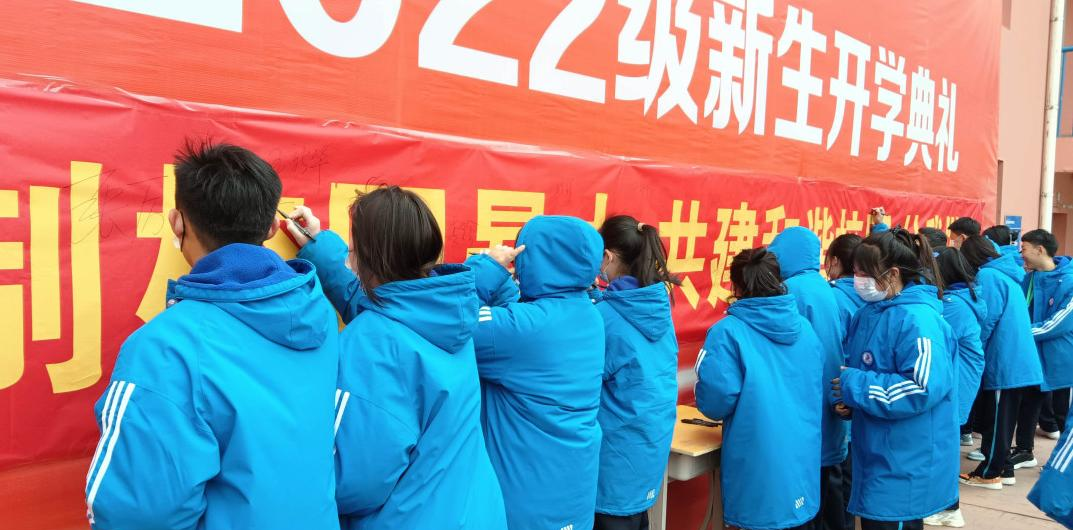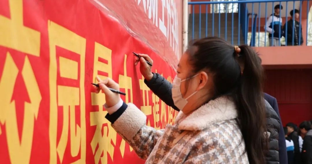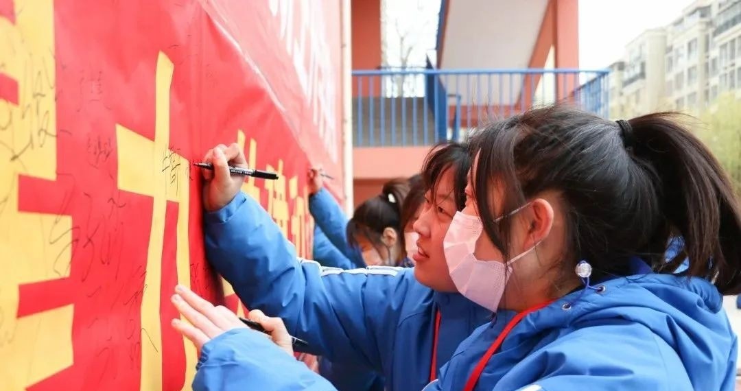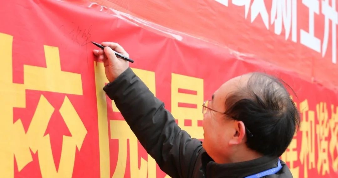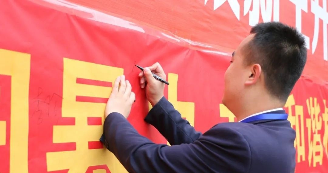 ▲在条幅上签字承诺