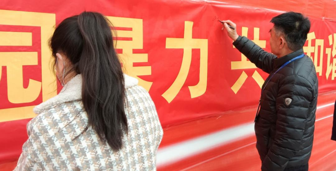 随后,老师们、同学们纷纷走上主席台,在“抵制校园暴力,共建和谐校园,从我做起”签上自己的名字。写下的不仅是名字,更是一份承诺。大家纷纷表示要从自身做起,抵制校园暴力,共创和谐校园。