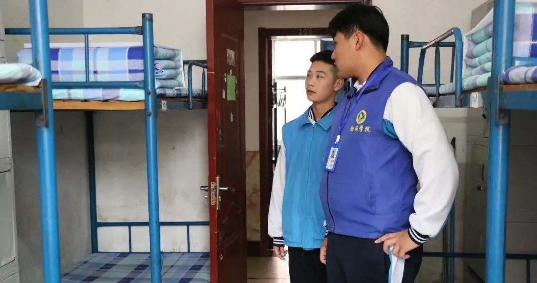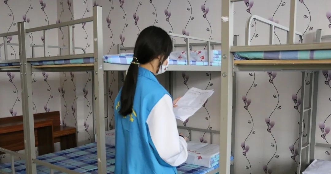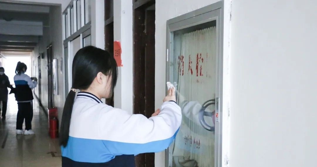 ▲学生会同学们进行卫生检查