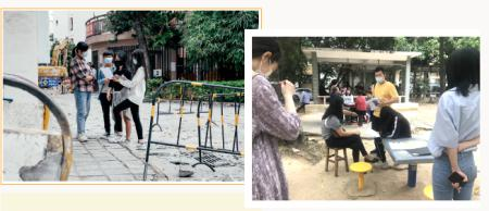 ▲学生进行社区调研、采访当地居民
