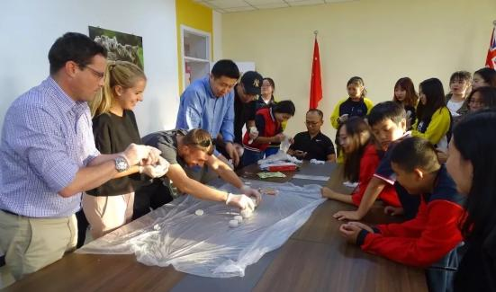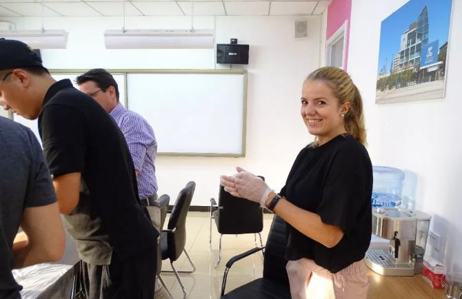 青春恣意的学生们,制作月饼热火朝天,异国他乡的外教们做起月饼来,更是全情投入。次亲手制作中国传统美食,新奇的体验牵动着每一名外教老师的心,这一刻,他们与这个历史悠久的国家似乎更亲近了些,同在一个学校,我们已是亲密的一家人!