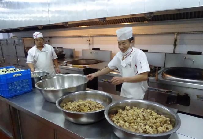 食堂的教职工们亲自为学生们和制月饼用面。水和面的比例是经过仔细比兑的;机器和面容易打结,食堂的师傅们就纯手工和面;几十斤的用面,食堂叔叔阿姨们一一分装后,分发到各个班级。