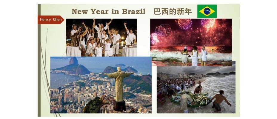 大家好,我是来自六年级的Henry Chen,接下来由我向大家介绍巴西人是如何欢度新年的。