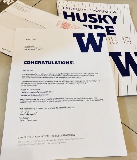 之后通过自己的努力,成功申请到了华盛顿大学 University of Washington。