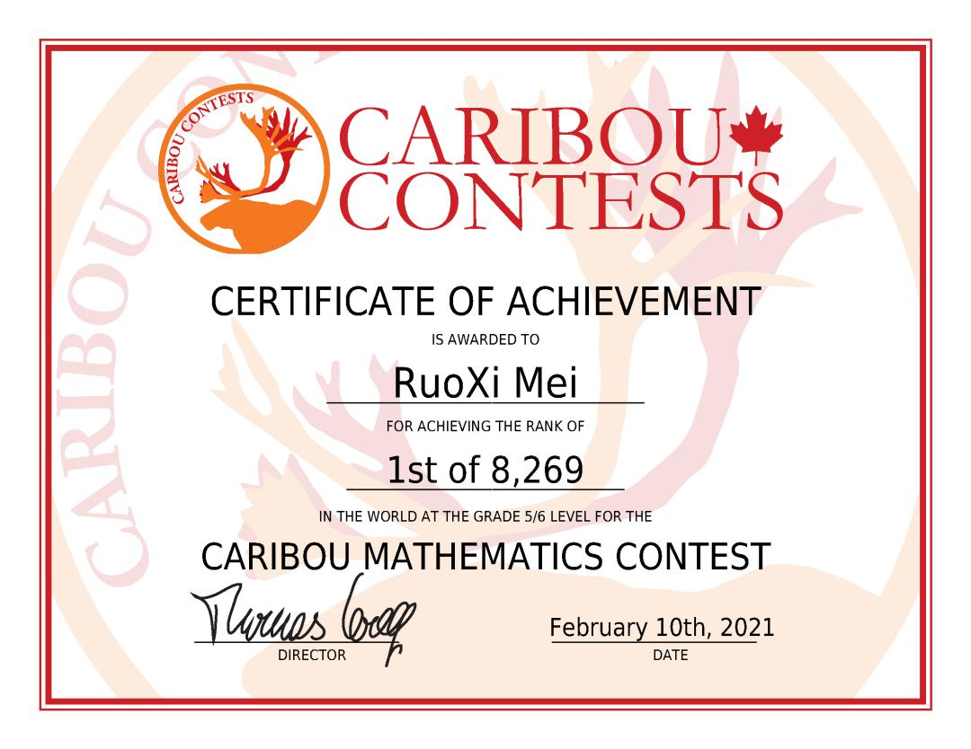 北美驯鹿数学竞赛 (Caribou Contests) 是由加拿大著名数学教授 Thomas Wolf 发起。该竞赛通过“交互式”的新颖有趣的问题,激发学生对数学的兴趣,提高学生对于问题的解决能力。北美驯鹿比赛从发起至今,迅速风靡全球 29 个国家,每年有16万名考生同台竞技,全球统一排名。