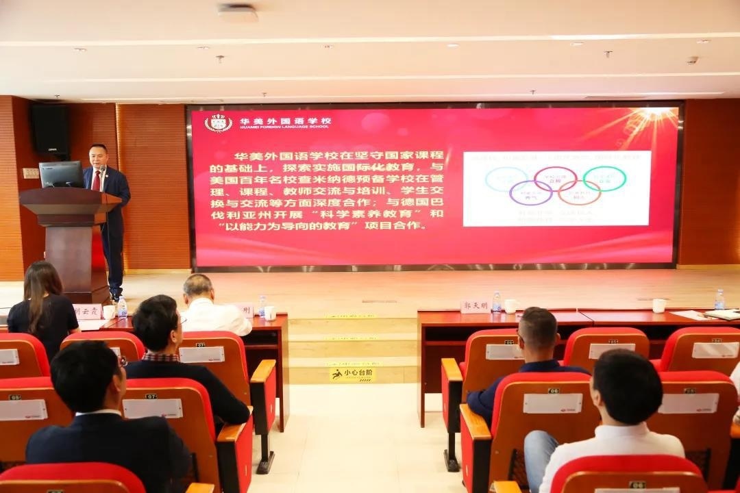 华美外国语学校是金安教育集团旗下重金打造的中西融合的全寄宿国际化学校,在坚守国家课程的基础上,探索实施国际化教育,与美国百年名校查米纳德预备学校在管理、课程、教师交流与培训、学生交换与交流等方面深度合作;与德国巴伐利亚州开展“科学素养教育”和“以能力为导向的教育”项目合作。