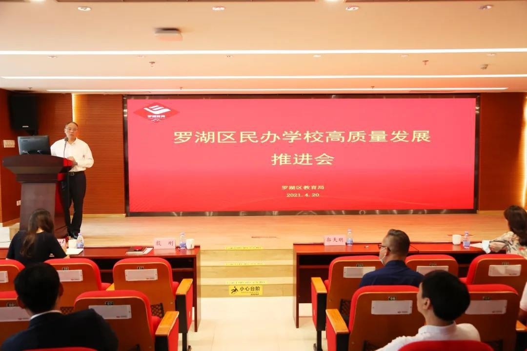 On the afternoon of April 20th, the high-quality development promotion meeting of private schools in Luohu District was held in the District Education Bureau.
